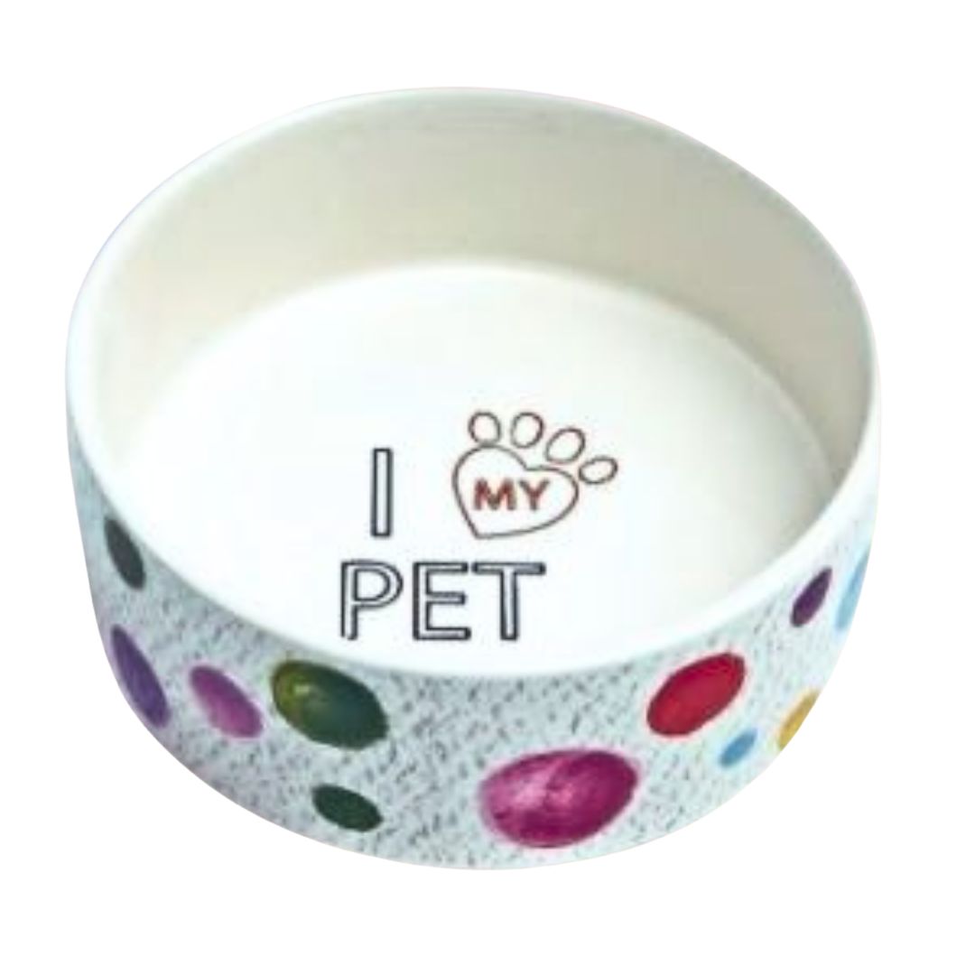Do you have a buddy who needs a new food or water bowl? A Park Life Boavista Medium Ceramic Bowl is a cheery, stoneware bowl designed to avoid spills and tipping. This bowl is constructed of FDA-approved ceramic that is dishwasher-safe and microwave-safe. The exterior of the bowl has brightly colored dots of red, yellow, green, blue, and purple. As your best friend finishes a meal, a hidden message, “I love my pet,” will be found on the bottom of this great new bowl. The Park Life Boavista Medium Ceramic Dog Bowl measures approximately 6.25” x 2”.