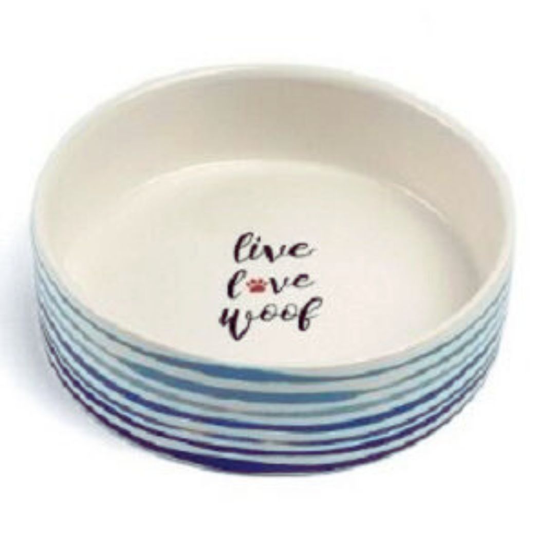 Do you have a buddy who needs a new food or water bowl? A Park Life Lagos Medium Ceramic Bowl is a cheery, stoneware bowl designed to avoid spills and tipping. This bowl is constructed of FDA-approved ceramic that is dishwasher-safe and microwave-safe. The exterior of the bowl is decorated in a bright blue wave pattern. As your best friend finishes a meal, a hidden message, “Live, Love, Woof,” will be found on the bottom of this great new bowl. The Park Life Lagos Medium Ceramic Dog Bowl measures approximately 6.25” x 2”.