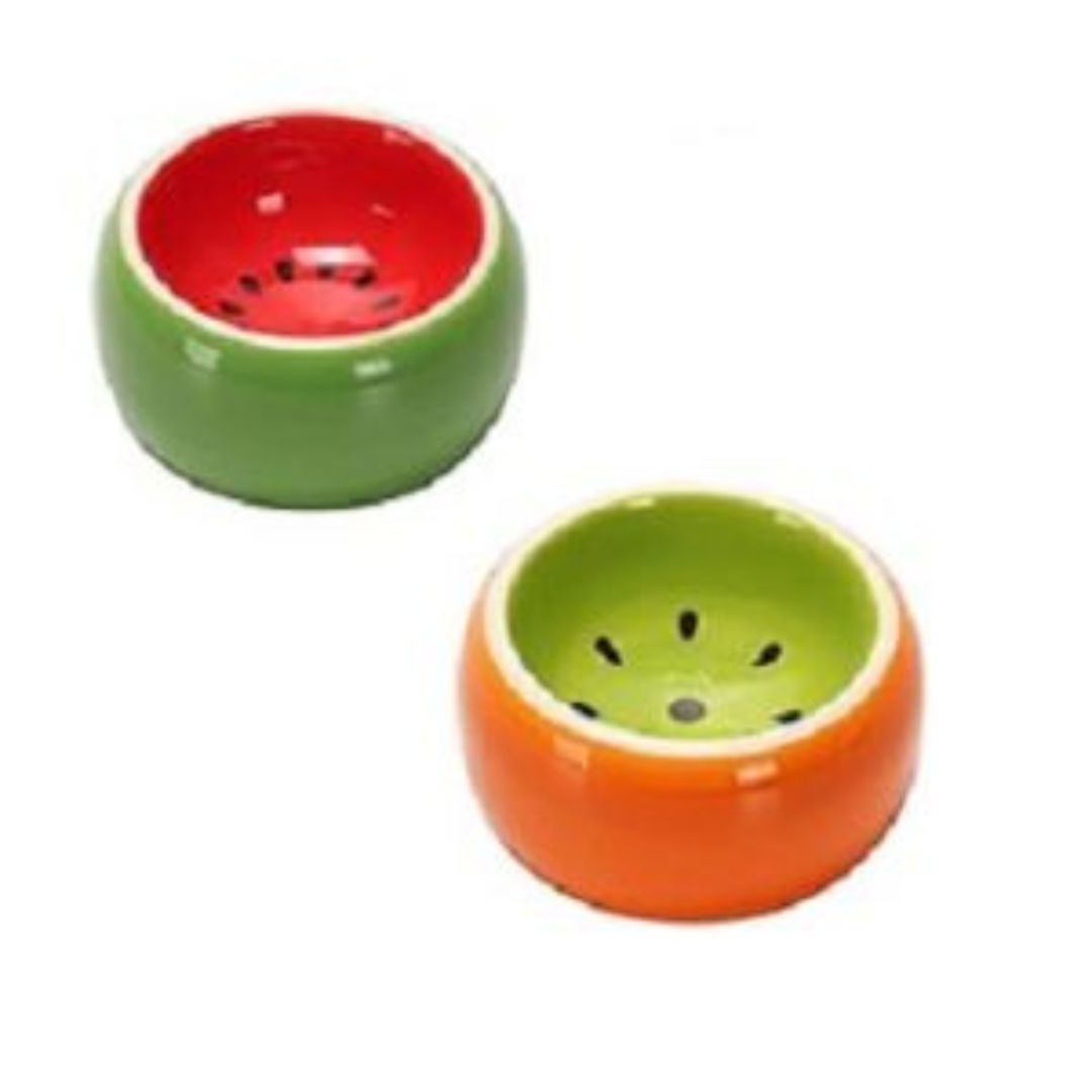 Do you have a bunny, ferret, or guinea pig that would love new food bowls? Then, these two whimsical small pets ceramic fruit food bowls will brighten your furry pal’s home. These bowls are made of high-quality ceramic. The two bowls are different colors – the watermelon is red/green and the kiwi is lime/orange. These bowls are dishwasher safe, which will make it easy to keep them clean. Each of these Small Pets Ceramic Fruit Food Bowls measures approximately 3” x 1.6”.