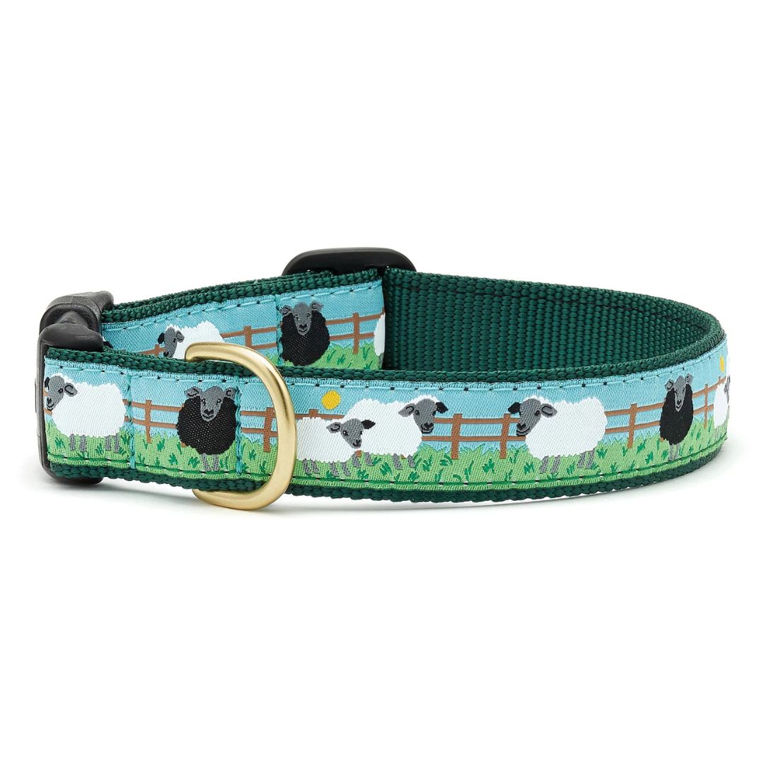 Does your favorite pooch need a new collar? A durable Up Country Counting Sheep Dog Collar will add some class to your dog with its pastoral black and white sheep country grazing in front of a bright blue sky. This designer collar is made from quality, flexible dark green nylon webbing that is joined with a durable black buckle. There is a secure brass ring on the collar that will enable you to attach a leash to walk your dog. The approximate sizes of the Up Country Counting Sheep Dog Collar are X-Small (1/2” wide x 6” to 12” length), Small (1” wide x 9” to 15” length), Medium (1” wide x 12” to 18” length), Large (1” wide x 15” to 21” length).