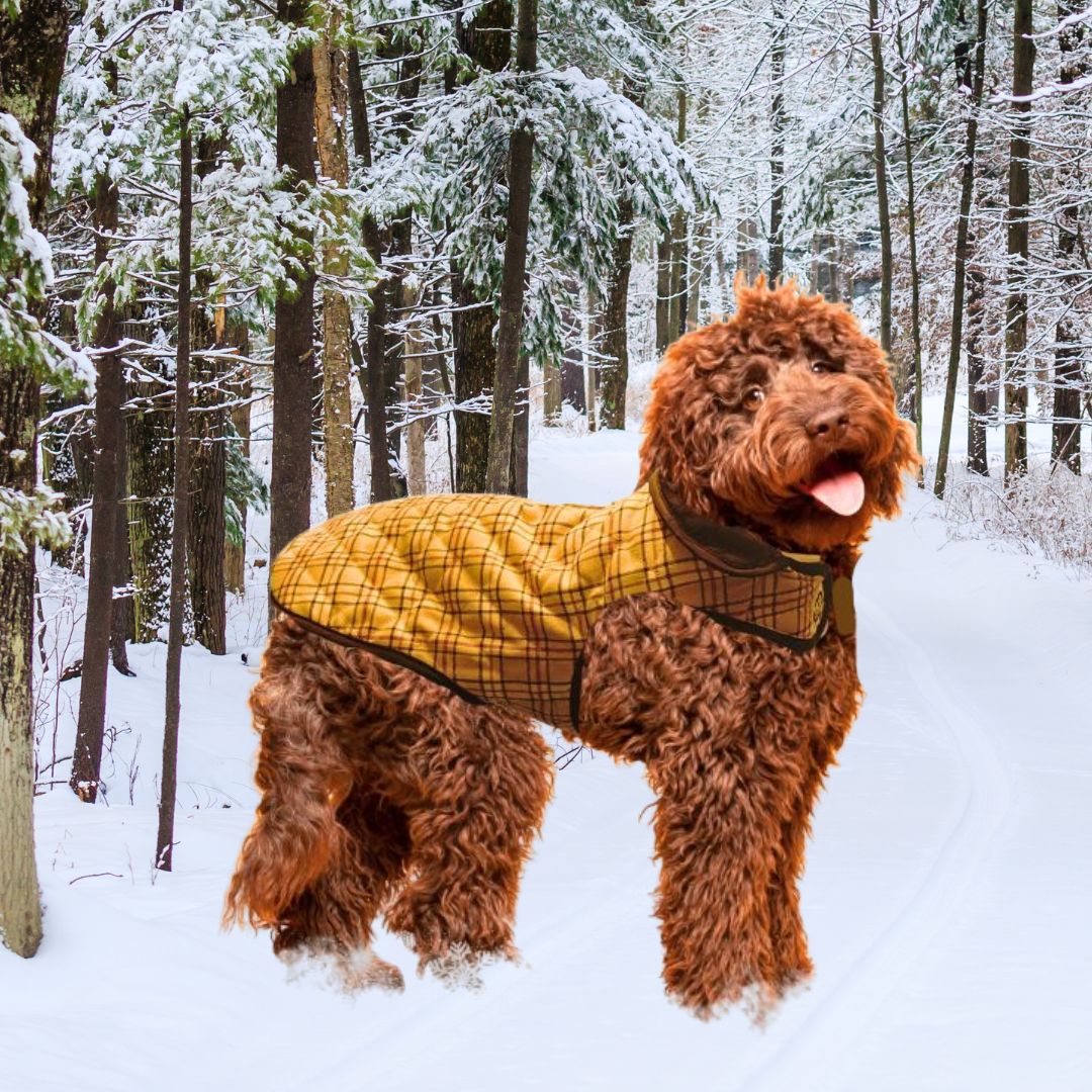 Do you have a best pal who needs a new coat as the weather becomes colder? Then, an Up Country Plaid Diamond Quilted Dog Coat will keep your dog warm in great style! Each water-repellent diamond coat is made of a durable polyester fabric that is reversible to a solid black quilted fabric. Each of these middle-weight coats has a soft black collar that can be folded down or up for comfort. A “buttonhole” opening is provided to attach to a leash to a collar or harness. The Up Country Plaid Diamond Quilted Dog Coat is available in sizes 10″, 16″, 18″, 21″, and 26″.
