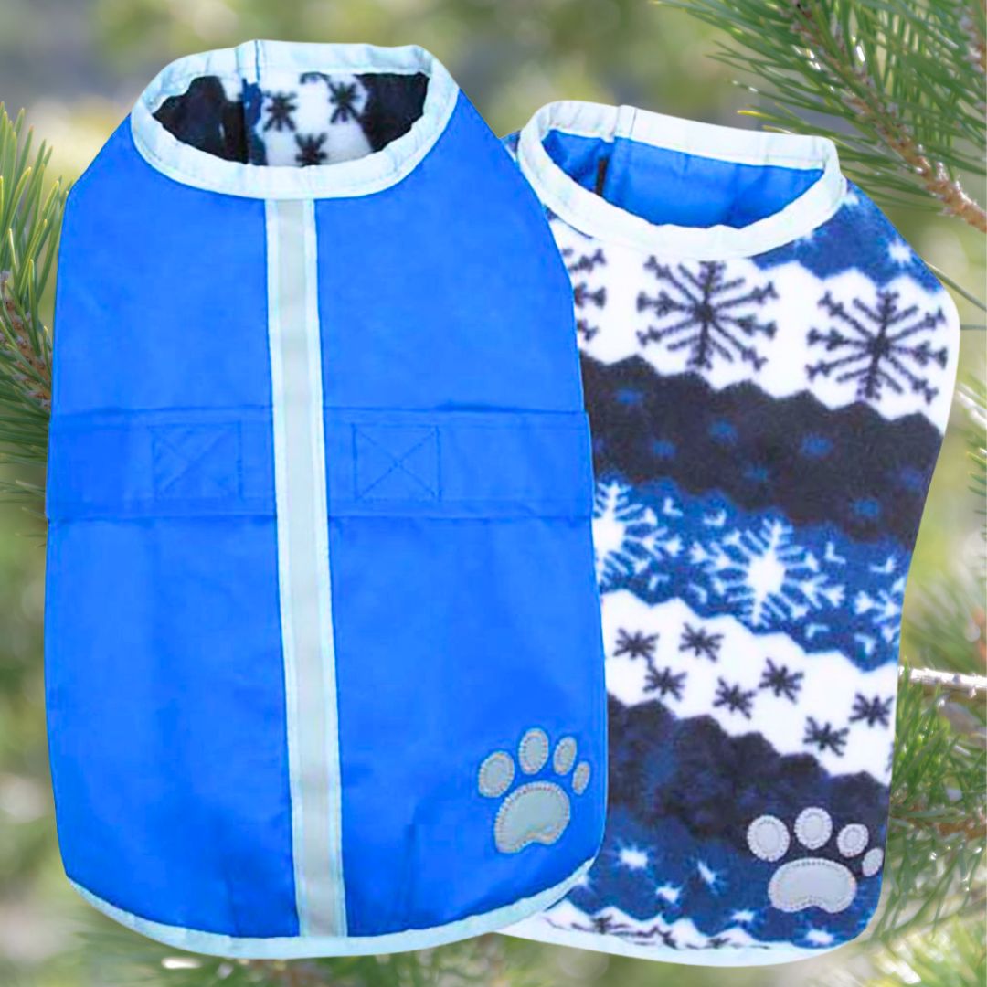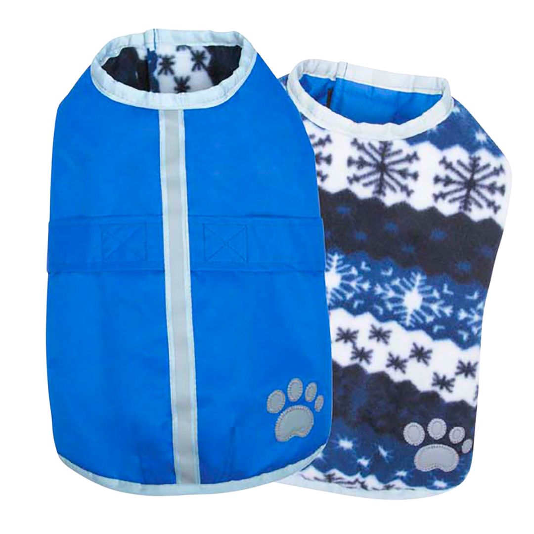 Do you have a favorite pup who hates venturing outdoors on chilly, cold days? Then, a Zack & Zooey Nor’easter Dog Blue Blanket Coat will keep your best pal warm and dry as the seasons change. Each Nor’easter Dog Blanket Coat is reversible with Velcro closures at the neck and chest for an adjustable fit. One side of the coat has warm plush blue and white Nordic snowflake-patterned fabric while the other is a bright blue water-resistant shell. This coat has reflective trim and pawprint on both sides for added safety on evening outings. The Zack and Zooey Nor’easter Dog Blanket Blue Coat is available in sizes small, medium, large, extra large.
